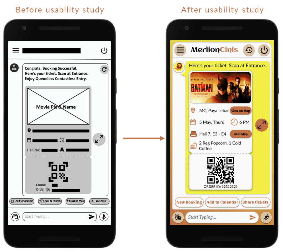 During initial usability study, identified users preferred lesser options to choose from to avoid confusions. The location, seat map were separate CTAs which were then integrated to be part of the ticket for easier accessibility in terms of functionality as well as readability.